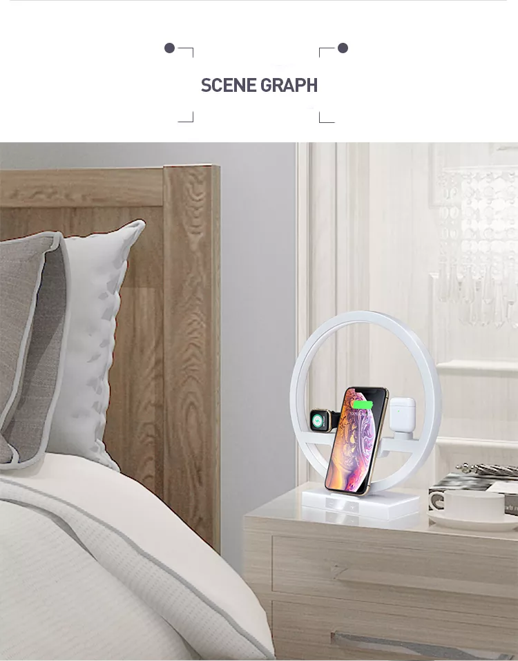 เข้ากันได้อย่างกว้างขวางและใช้งานได้ดี เครื่องชาร์จไร้สายแม่เหล็กทรงกลมเหมาะสำหรับการชาร์จไร้สายโทรศัพท์มือถือหลายยี่ห้อ ด้วยกำลังชาร์จที่รวดเร็วสูงสุด 10W มอบประสบการณ์การชาร์จที่มีประสิทธิภาพและสะดวกสบายสำหรับโทรศัพท์ของคุณ นอกจากฟังก์ชันการชาร์จแบบไร้สายของโทรศัพท์มือถือแล้ว เรายังคำนึงถึงความต้องการการชาร์จของอุปกรณ์อัจฉริยะอื่นๆ ของผู้ใช้อีกด้วย เครื่องชาร์จมีอินเทอร์เฟซการชาร์จพิเศษสำหรับหูฟังและนาฬิกา และรองรับการชาร์จแบบมีสาย ด้านหลังสินค้าออกแบบพิเศษมีร่อง ช่องเสียบสายเคเบิลนี้ซ่อนสายชาร์จของชุดหูฟังและนาฬิกา ทำให้ผลิตภัณฑ์ทั้งหมดดูสะอาดตาและสวยงามยิ่งขึ้น คุณเพียงแค่วางสายชาร์จไว้ตามช่องเสียบสายเคเบิลแล้วเชื่อมต่ออุปกรณ์เพื่อชาร์จได้อย่างง่ายดาย ในขณะเดียวกันก็ทำให้เดสก์ท็อปของคุณสะอาดและเป็นระเบียบ